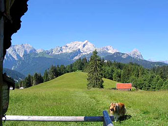 Wandern am Eckbauer mit Blick zur Alpspitze |